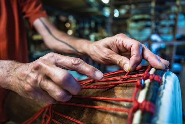 Bei Monky5 werden Djembés sowie weitere Percussion-Instrumente repariert.